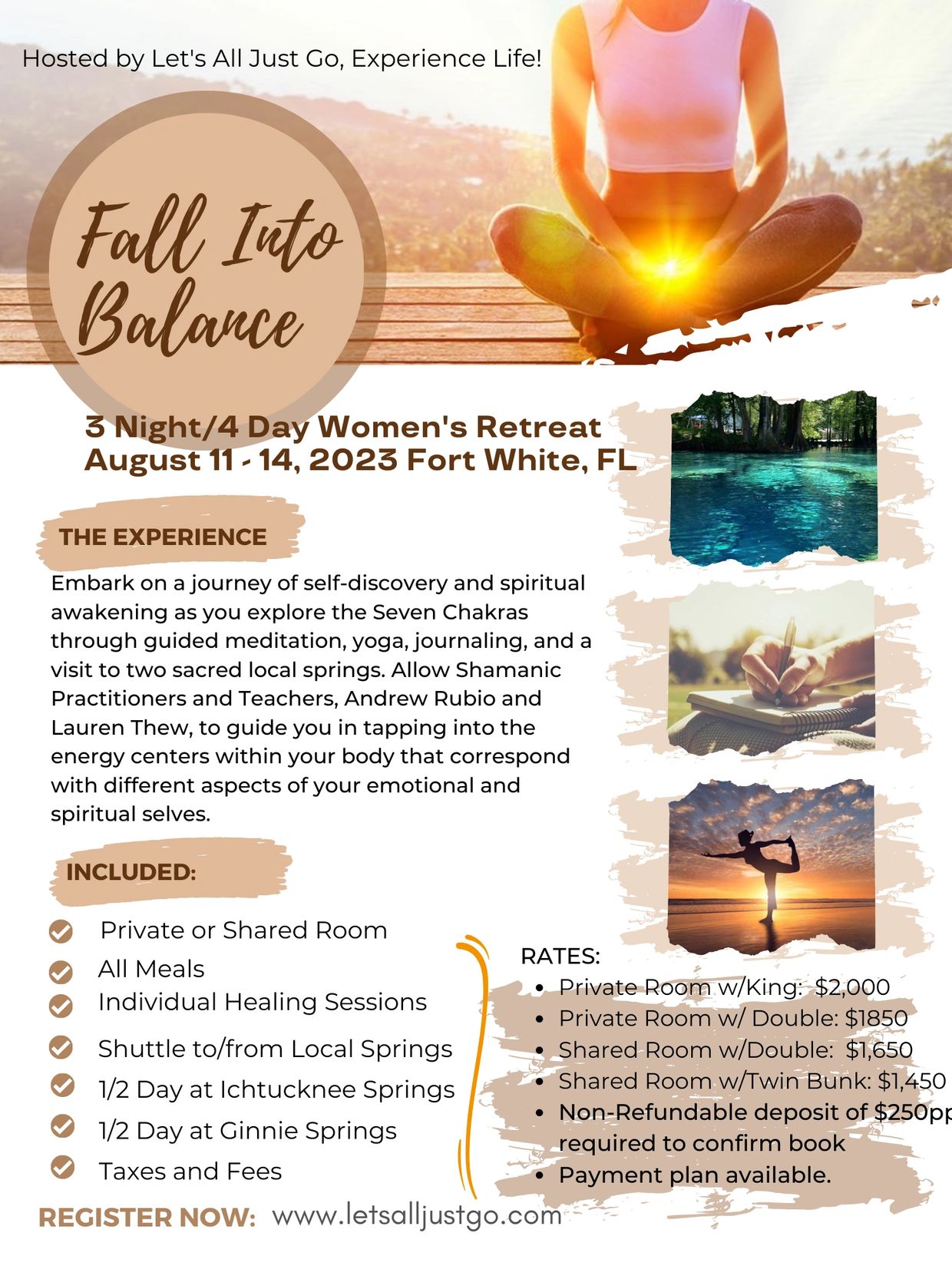 Embark on a journey of self-discovery and spiritual awakening as you explore the Seven Chakras through guided meditation, yoga, journaling, and a visit to two sacred local springs. Allow Shamanic Practitioners and Teachers, Andrew Rubio and Lauren Thew, to guide you in tapping into the energy centers within your body that correspond with different aspects of your emotional and spiritual selves.